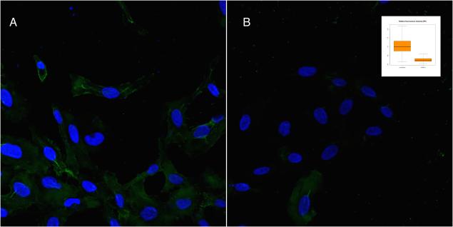 2016-06-03 It's time for another HPA image of the week! This week's image was brought to us by citizen scientists in Project Discovery, and specifically by x Truf a member of the Signal Cartel in EVE online who found this image while playing Project Discovery. The protein stained in Fig 1. is an image of Moesin (MSN) found in the plasma membrane of the cell. This sample shows a staining of MSN in U-251 MG human glioblastoma astrocytoma (brain) cells. MSN is a member of the ERM family which provide a link between plasma membranes and actin filaments. This link was briefly discussed in a previous blog. Due to their linkage between the cytoskeleton and the plasma membrane, the ERM family of proteins plays a vital role in cell adhesion and migration (Arpin M. et al. 2011). This family of proteins, and MSN specifically, have been implicated in a number of diseases including Parkinson's disease (Jaleel M. et al. 2007). It has also been shown to be an important biomarker that is differentially expressed in some forms of breast cancer (Wang C.C. et al. 2012). This sample was brought to our attention as an example of where the membrane has a large number of finger like extensions which may appear to be focal adhesions on first glance. In this case we can see more continuous structures along the cell border (Fig 1, white box) while focal adhesions typically are short disjoint marks both near the cell edge and under the cell body as seen in this example from the dictionary. MSN has been localized to the plasma membrane in all three cell lines and for all four "sibling" antibodies, or antibodies that label the same protein. These siblings give us a high confidence that the antibody is binding the same thing each time and that we are accurately characterizing the MSN protein. Another way we test that our antibodies are labeling the proteins they are supposed to is to add small interfering RNA (siRNA) to our sample (Fig 2). These siRNAs block production of our protein of interest (green). If the antibody is correctly targeting only the blocked protein, the cells treated with the siRNA targeting MSN (Fig 2 B) will show no green fluorescence because no MSN protein is present in those cells. The siRNA don't always make it into the cells, so some cells in the knockdown may still expresses MSN as you can see in the bottom center of Figure 2 (B). The degree of knockdown can be evaluated by the box plot (Fig 2 B inset) which is visible in a larger version on the siRNA page for MSN. Together with GFP cells (discussed last week), these siRNA experiments provide an important tool for validating antibody specificity, something Nature recently called a "crisis" (Baker M 2015). Thanks to the all the citizen scientists participating in Project Discovery and particularly to x Truf & the Signal Cartel for suggesting this image and for their contribution to science! Devin Sullivan |