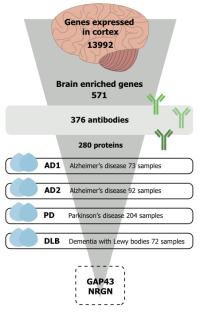 2016-09-27 In a recent study published in Proteomics Clinical Applications researchers from the Human Protein Atlas have profiled 280 brain-enriched proteins in cerebrospinal fluid from patients with Alzheimer´s disease, Parkinson´s disease and dementia with Lewy bodies. This study is part of a larger effort aiming to expand the knowledge of brain-enriched proteins in human cerebrospinal fluid and to provide novel insight into the relation between such proteins and different neurodegenerative diseases. The researchers report a multiplexed protein profiling using an affinity-based proteomics approach to generate cerebrospinal fluid profiles of brain-enriched proteins...Read more Image of the week - GAD1 in the brain