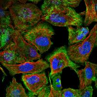 2016-05-06 This week HPA image of the week, I've decided to highlight two of my favorite things, the cell cycle and actin filaments! The protein labeled in Fig 1. is an image of Cell division cycle 42 effector protein (Rho GTPase binding) 4 (CDC42EP4). In addition to being quite a mouthful, this protein resides in the cytoplasm and is associated with the actin filaments. In this image, CDC42EP4 is seen in U-2 OS human osteosarcoma cells. As the name suggests, the CDC42EP4 is a protein associated with CDC42, which helps regulate the transition from G1 to S (in which DNA is replicated), and is essential for proper cell cycle progression (Yasuda S et al. 2006)...Read more |